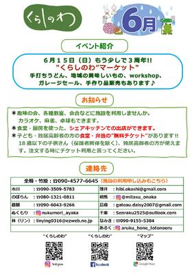 くらしのわ「6月のイベント」 投稿: 那須中学校 (06/06) くらしのわ「6月のイベント」を紹介します。 ”くらしのわ”マーケットにおける「地域の美味しいもの」のワードが気になります。ぜひご家族で出かけてみてはいかがですか?