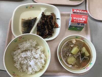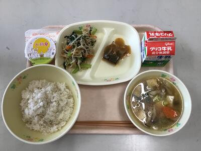 ★23日・・麦ごはん・牛乳・焼き魚・ひじきの煮物・豚汁