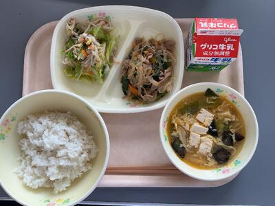 下段・・麦ごはん・牛乳・プルコギ・ナムル・酸辣湯
